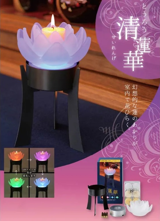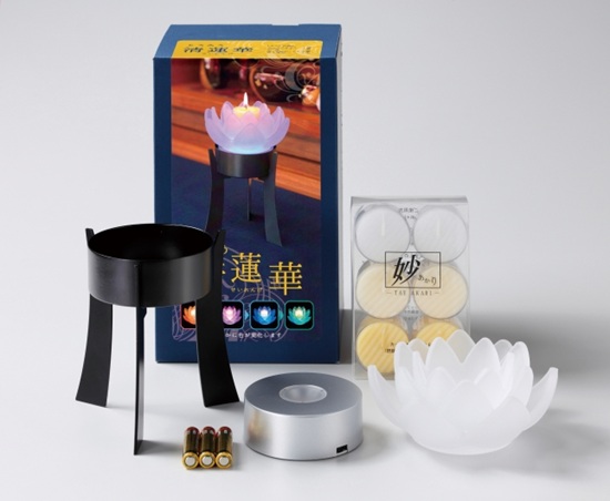 ロータスグレイス1個 カップ付きローソク6個 LEDコースター1個 台座1個 単4電池3本 燃焼時間:約4時間 カートン:12箱 箱サイズ:13×12×22p